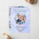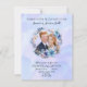 Quando você escolhe ter suas núpcias, então tenha uma recepção algumas semanas depois, esta é uma bela escolha para um convite. Uma fotografia da noiva e do noivo (substitua pela sua), rodeada por uma coroa floral azul, sobre um fundo azul turvo e roxo.