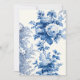 Flores, videiras e folhas, azuis e elegantes, de fundo branco antigo. A parte traseira apresenta campos de texto florais complementares e editáveis.