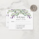 Um fundo branco, texto preto. Decorado com flores de lavanda e verde de eucalipto. Personalize e adicione uma resposta por data. Voltar: adicione o URL do seu local de casamento ao código QR e um texto.