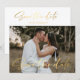 guarde a data, manuscrito dourado, foto de casamento, Cartão de Nota, personalizado. dois cartões laterais, no outro lado, informações de casamento, personalizadas.