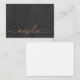 Esta única nota moderna "uma nota de", apresenta seu primeiro nome em uma caligrafia de script manuscrito de cobre em um fundo angustiado de efeito de quadro, com seu sobrenome em uma tipografia moderna sans serif aninhada em seu tipo de script.