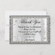 Mande uma nota calorosa de agradecimento aos seus convidados que vieram no seu Partido da Reforma. O cartão tem um padrão de Seda Branca com uma moldura feita de uma dupla Vara de Pérolas Brancas. O fundo tem um padrão falso de Silver Foil. Algumas pérolas brancas são apresentadas aleatoriamente na Seda Branca. O nome e a mensagem são separados por um elegante Prata, Cinza branca e escura, criando linhas intrincadas com coração no meio. A parte de trás do cartão tem o mesmo Padrão de Seda Branca com Folha Prateada na parte inferior. Os dois padrões são unidos por uma dupla cadeia de pérolas. No topo, há as mesmas linhas intrincadas de Prata com coração no centro.