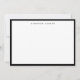 Simples e elegante, este design clássico tem uma borda externa preta ao redor de um fundo branco comum. Um modelo de texto é incluído para personalizar com seu nome ou outro texto desejado. Estes cartões de nota são uma escolha maravilhosa para se manter à mão por notas escrevendo, obrigado, manter contato e enviar saudações. Eles estão disponíveis em vários tipos de papel, pesos e texturas e vêm com um envelope branco comum.