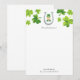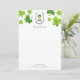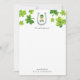 Papel de carta personalizado com cartões de notas com um pequeno duende do Dia de São Patrício pintado à mão e desenho de trevo de quatro folhas por Shelby Allison.