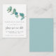 Um encantador MINI SIZE de 3,5" x 2,5" para o seu casamento Salve as Datas. NOTE se você estiver nos EUA, esse tamanho é menor que o requisito mínimo de correio dos EUA, portanto escolha o tamanho de 3,5 x 5" se você deseja enviá-los por e-mail. Um elegante design de folha Eucalyptus. Uma ramificação solteiro de folhas de eucalipto azuis lacrimogêneo flui a partir do topo à direita e um script de conjunto manuscrito para Salvar nossa Data. Personalize facilmente o resto do texto para seus detalhes.