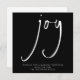 UM TINY SIZE OBSERVE SE você estiver nos EUA, o quadrado de 2,5" é menor que o requisito mínimo de postagem dos EUA; portanto, escolha o tamanho do quadrado de 5,25" x 5,25" se você estiver planejando enviá-los (Observe que os cartões quadrados podem custar mais pelo correio do que os retangulares). Alternativo há outros tipos de placa para este design disponíveis nesta coleção. Um encantador mini tamanho quadrado de 2,5 pol... Joy Elegante Script White Black Holiday. A alegria está em um estilo manuscrito na moda e personaliza facilmente sua saudação e seu nome. Mostrado em texto branco clássico a preto. As alterações nas cores do texto e do plano de fundo podem ser feitas se você desejar por meio da opção personalizar mais.