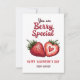 Este adorável cartão de Dia dos Namorados para sala de aula apresenta uma encantadora ilustração em aquarela de duas frutas vermelhas fofas, uma com um coração, ao lado da doce mensagem “Você é bem Especial” em um fundo branco ajustável. Com texto personalizável para “Feliz Dia dos Namorados” e o nome do remetente, é perfeito para adicionar um toque pessoal. O verso é projetado em um tom rosa personalizável, criando uma aparência vibrante e alegre. Ótimo para o Dia dos Namorados, Dia das Galentes, Dia das Mães ou qualquer ocasião para celebrar alguém especial, este cartão é adequado para crianças e adultos!