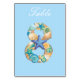 O cartão de número da mesa é exibido com uma cor de fundo azul com um número de conchas de praia fofas.