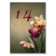 Cartão de número da mesa de casamento elegante feito num fundo verde antigo. Gráficos incríveis de uma flor da íris e borboleta coloridas de bolor e creme, decoram o lado direito do cartão. Personalize o número de cada mesa na sua recepção. Os produtos correspondentes estão disponíveis.