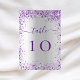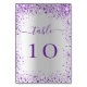 Um fundo com aparência de prata falsa decorado com faíscas violetas roxas personalizam e adicionam seus números de tabela. Adicione seus números um a um.