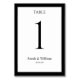 Um clássico cartão de número de tabela de casamento preto e branco que pode ser personalizado com qualquer número de tabela. Os gráficos aparecem em ambos os lados desta placa.