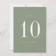 Cartão de Número da Tabela de Casamento Verde Sage