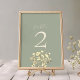 Cartão de Número da Tabela de Casamento Verde Sage