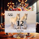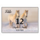 Cartão de número da mesa de casamento com dois cavalos correndo alegremente na neve. Bonita celebração de casamento no inverno para amantes de cavalos.