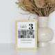 Cartões de números de tabelas de casamento com letras negras modernas e "Mesa" em fontes modernas de caligrafia. O design tem um fundo branco com delicados feixes pretos para um olhar de um tipo.