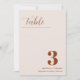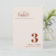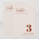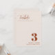 Cartões de números de tabelas de casamento com letras negras modernas e "Mesa" em fontes modernas de caligrafia. O design tem um fundo branco com delicados feixes pretos para um olhar de um tipo.