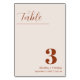 Cartões de números de tabela de casamento com carateres modernos laranja queimados e "Mesa" em letra de caligrafia moderna. O design tem um fundo branco com delicados feixes pretos para um olhar de um tipo.