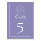 Cartão de Número da Tabela de Repouso do Monograma lavanda