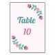 cartão de número de mesa com flores e folhas sonhadoras