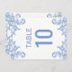 Cartão de Número de Mesa com Flores em Aquarela Az
