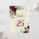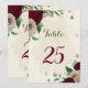Belo cartão romântico de números de mesa com flores de burgundy e champanhe e algumas folhas verdes. PARA MAIS PRODUTOS CORRESPONDENTES, clique na coleção acima ou entre em contato comigo
