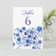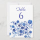 Direcione os convidados com este cartão de número de mesa clássico, apresentando tipografia azul elegante acima de uma rica borda floral azul em um fundo branco crocante. O padrão botânico ousado adiciona um refinado acento "algo azul" que se adequa a celebrações costeiras, recepções de jardim românticas e temas de casamento atemporais em azul e branco. Coordene-o com papelaria e detalhes do dia para criar uma mesa sofisticada e coesa.