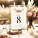 Guie seus convidados com este cartão de número de mesa de casamento rústico apresentando elegantes galhadas de cervo e tons terrosos suaves — perfeito para um casamento florestal, estilo country ou outono. Projetado para combinar com o tema de casamento de galhadas rústicas, este número de mesa adiciona um toque natural e refinado à decoração das mesas da recepção.