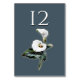 Cartão de número de mesa de recepção de casamento elegante e plano feito em uma cor azul pedra com arte vintage de lírios calla brancos. Personalize o número para cada mesa na sua recepção. Produtos de casamento correspondentes estão disponíveis.