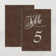 Cartão de Número de Mesa de Casamento Ocidental em Couro Marrom.