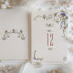 Esta placa numérica da tabela casado o charme de vintage com elegância botânica, perfeito para adicionar um toque sofisticado a qualquer recepção de casamento. A frente do cartão apresenta um arranjo delicado de florais brancos ao estilo Art Nouveau/Medieval, que se arregalam graciosamente em torno do conjunto numérico ousado numa matiz de rosa suave e suja. O verso do cartão continua o tema com um monograma floral sutil, mas elegante, interligado com verde. Ambas as faces são colocadas sobre um fundo de marfim texturizado, o que aumenta a sensação antiga do design. Este cartão de número de tabela não é apenas uma peça prática para guiar hóspedes, mas também uma bela manutenção que ecoa a estética romântica das eras passadas.