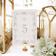 Esta Carta de Número da Tabela do Monograma de Regência da Coleção Victoria apresenta flores desenhadas à mão, no estilo renascentista, formando lindamente os detalhes do casamento em um estilo de fonte clássico e elegante. Este design de eterno tem certeza de que vai dar uma impressão duradoura aos seus convidados!