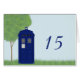 Cartão de Número de Tabela de Casamento de Casamento com uma brilhante caixa de polícia azul vintage em um campo bonito com uma árvore ao fundo. Fácil de personalizar, basta adicionar o texto de sua escolha nos campos de texto fornecidos. Clique em "Personalizar" para encontrar mais opções de personalização.