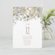 Melhore sua decoração de casamento com esta maravilhosa carta de números de mesas, projetada no estilo antigo Art Nouveau. O cartão apresenta uma elegante variedade de flores silvestres em tons delicados de rosa suave, azul pastel, verdes suaves e pêssego quente, criando um aspecto gracioso e eterno. O design floral em cascata no topo enquadra o número da mesa e os nomes de hóspedes lindamente, adicionando um toque de elegância inspirada na natureza à sua recepção de casamento. Os tons de terra e as linhas fluentes da trabalho de arte evocam uma sensação de beleza refinada, fazer esta carta como uma adição perfeita a qualquer evento sofisticado.
