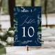 Cartões de mesa de casamento elegantes e botânicos com o número da tabela aninhados em um quadro retangular cercados por eucalipto, samambaias e outros ricos verdes com fundo marinho. Personalize o número de cada placa de mesa e adicione-o ao seu carrinho. Os números das tabelas 5x7 foram projetados para coordenar com nossa coleção de casamento Abundant Greenery.