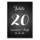 Cartão de Número de Tabela de Casamento de Script Branco Elegante | Chalkboard. Elke Clarke© para MonogramaGallery no Zazzle. Efeito fotográfico preto no quadro negro impresso. Adicione o número da tabela e adicione uma ordem de "1" ao carrinho. Em seguida, repita adicionando o número "2" ao cartão e, em seguida, adicione uma ordem de "1" ao carrinho e repita até que você tenha uma placa com cada um dos números de tabela no carrinho.