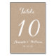 Cartão de Número de Tabela de Casamento de Script Branco Elegante | Beige Kraft Paper. Elke Clarke© para MonogramaGallery no Zazzle. Efeito fotográfico do papel kraft impresso. Adicione o número da tabela e adicione uma ordem de "1" ao carrinho. Em seguida, repita adicionando o número "2" ao cartão e, em seguida, adicione uma ordem de "1" ao carrinho e repita até que você tenha uma placa com cada um dos números de tabela no carrinho.