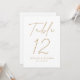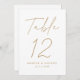 Cartões simples e modernos de números da mesa de casamento, com "Mesa", mostrados em um guião dourado, manuscrito, com fundo branco (ou uma cor da sua escolha). Para pedir os cartões de mesa de casamento dourados: adicione seu nome, data de casamento e número da mesa. Cada número precisa ser adicionado ao seu carrinho individualmente. Depois de terminar de adicionar cada número de tabela ao seu carrinho, basta fazer check-out e esperar que suas lindas placas de números de tabela cheguem!