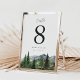 Defina o tom para sua recepção com esta placa de número de tabela 5x7" da coleção Timberline pela Redwood & Vine Design Co. Mostrando uma montanha de aquarela tranquila e paisagem verde, esta design traz elegância rústica para o inverno, floresta ou casamentos ao ar livre. Disponível como cartão impresso ou download digital, e personalizável com seus nomes e data para uma aparência polida e coesa.