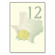 Placa de número da tabela de recepções de casamento colorida de marfim elegante, com gráficos de um mapa bronzeado e verde do Texas, com uma rosa amarela clara. Personalize o número de cada mesa na sua recepção. Produtos correspondentes disponíveis.