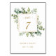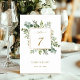 Este cartão de número da mesa de casamento apresenta cor d'água, eucalipto verde, folhas verdes e um quadro quadrado dourado. Para personalização mais avançada deste design, clique no link "Personalizar mais". Itens correspondentes também estão disponíveis.