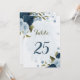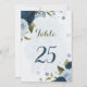 Belo cartão de número de mesa romântico com flores azuis marinhos e azuis leves e poeirentas e algumas folhas bonito. PARA MAIS PRODUTOS CORRESPONDENTES, clique na coleção acima ou entre em contato comigo