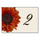 Um cartão de número da mesa de casamento com um girassol laranja. Personalize o número antes de fazer o pedido.
