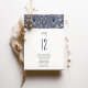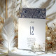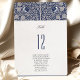 Esta Carta de Números de Mesa de Pássaros Vitorianos adiciona um toque de elegância antiga à sua decoração recepção de casamento. A frente mostra um sofisticado fundo azul-marinho com um padrão floral de creme-ornamentado que exumenta a grandeza da era vitoriana. Um par de pássaros amorosos monogramados adiciona um toque personalizado, significando a unidade do casal. O número da tabela em negrito é exibido em uma fonte limpa e clássica, fornecendo navegação fácil para os convidados e complementando a estética da safra. A parte traseira da placa ecoa no design frontal, garantindo consistência e estilo em todos os ângulos. Estas cartas são mais do que simples práticas; são uma bela guardiã que honra o passado enquanto celebra o presente.