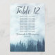 Estes bonitos cartões de número da mesa de casamento incluem um quadro de assentos ou uma lista de dez nomes fazer que é ainda mais fácil para os seus convidados encontrar as suas mesas. A design rustica, porém elegante, apresenta um pano de fundo de pinheiros de montanha azuis envoltos em neblina ou neblina. Essas placas são maiores que o fazer padrão. É fácil para seus convidados encontrar suas mesas.