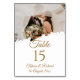 Eleve a sofisticação do seu evento com a nossa Elegante placa de número da tabela de texto Dourada. Este design apresenta um espaço para uma foto do casal feliz, um roteiro elegante de ouro e colocado no verso para adicionar nomes de convidados. Perfeito por adicionar um pouco de luxo ao seu casamento, aniversário ou qualquer ocasião especial.