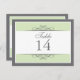 Tradicional, porém contemporânea, é o foco desta bela carta de mesa. O verde macio, bordado com cinzas brancas e carvões, constitui a base. O painel branco contém as informações de mesa. Design de lado duplo para conveniência a partir de qualquer ângulo. Disponível em cores alternativas com produtos correspondentes.