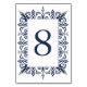 As modernas placas de números de tabela inspiradas em Marrocos apresentam uma borda geométrica em azul e branco marinho ao redor do número da sua tabela. Design repete-se no lado oposto. Coordena-se com a nossa suíte de convite de casamento Marraquexe em Marinho.