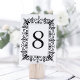 As modernas placas de números de tabela inspiradas em Marrocos apresentam uma borda geométrica em preto clássico e branco ao redor do número da sua tabela. Design repete-se no lado oposto. Coordena-se com a nossa suíte de convites de casamento Marraquexe em preto.