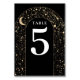 Cartão de número da mesa de casamento mística em preto e ouro