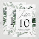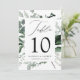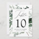 Cartões de mesa de casamento elegantes e botânicos com o número da tabela, seus nomes e data de casamento aninhados em um quadro retangular cercados por eucalipto, samambaias e outros ricos verdes. Personalize o número de cada placa de mesa e adicione-o ao seu carrinho. Os cartões de mesa 5x7 foram projetados para coordenar com nossa coleção de casamento Abundant Greenery.